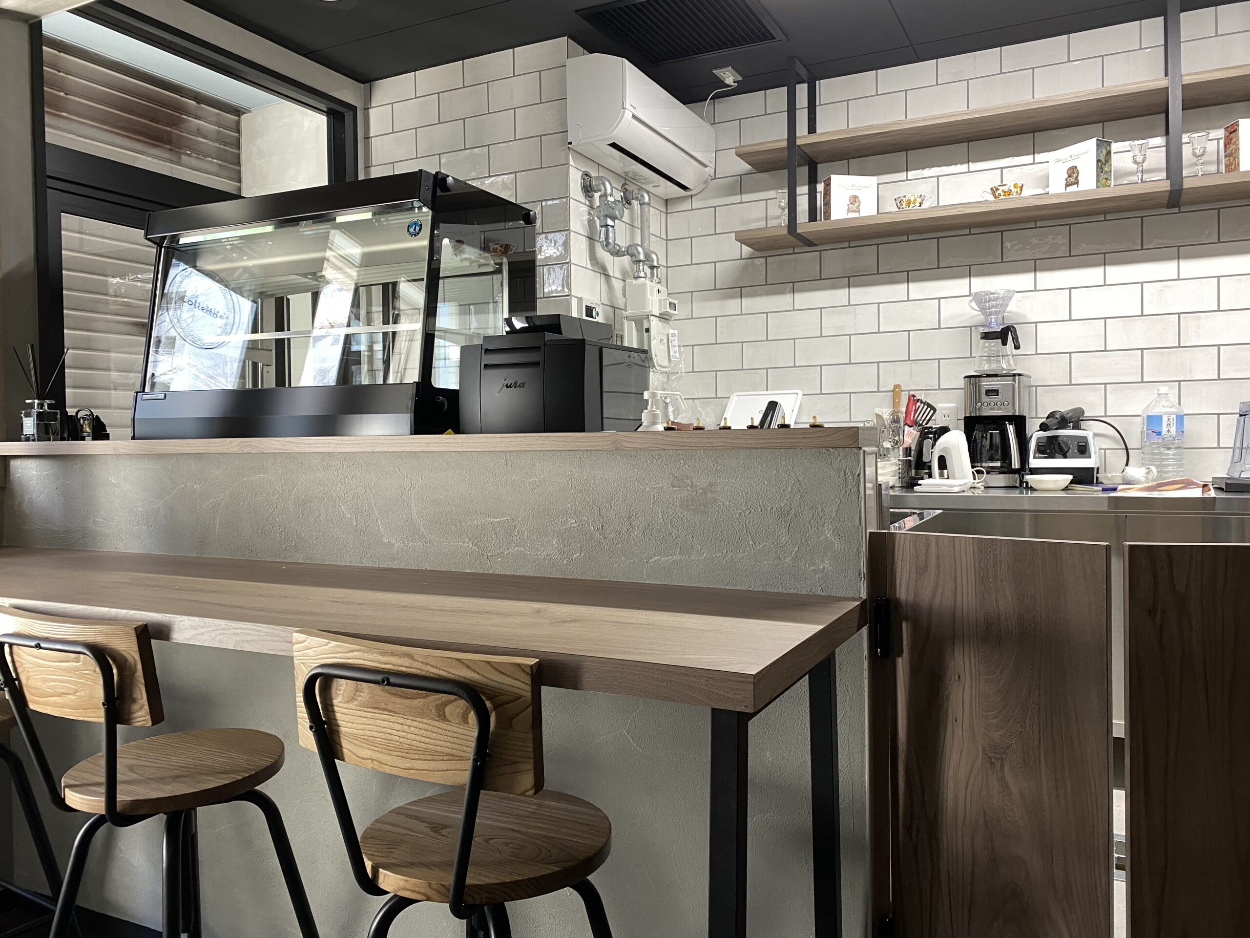客席8人の小さなスペースながら、教室利用されたい方にはテーブル移動も可能、テイクアウト窓も備えてあります。
