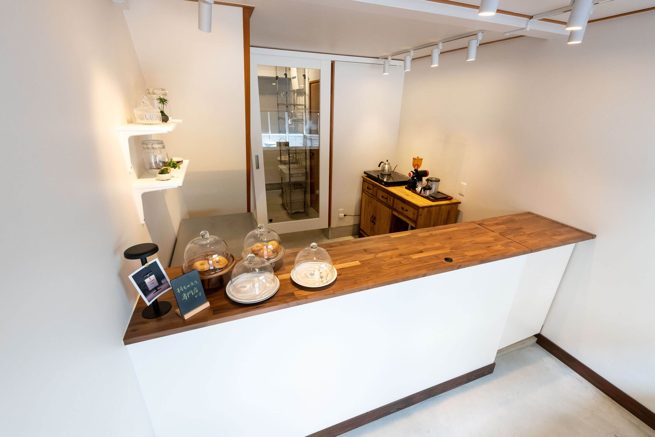 家賃の上限を決めていたため、当初間借り営業を考えていました。自宅近くで賃借人を募集している住居があり、聞けば家賃が予算内で、住居から店舗への改装及び原状復帰不要、と家主より許可がでたので契約しました。改装工事を【ザワン】の片山社長にご依頼しましたところ、まずは隣の古い壊れた長屋の見た目にドン引きされました。しかしプロフェッショナルな目線から、コーヒーだけでなく食べ物も出した方がいい、というアドバイスを頂きました。カフェズライフ同窓生の友人(現在一緒に店を運営しています)からは、フードはドーナツが良いのでは、という意見をもらい、コーヒーとドーナツの店に決まりました。