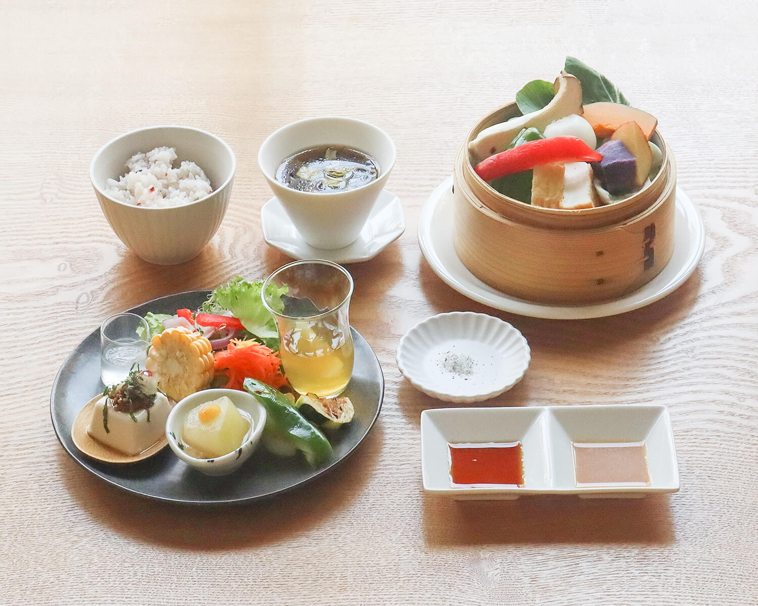 そんな食材にこだわり、特に野菜は、本来、野菜自身が持つ甘味を残し、旨味を凝縮させ、更に栄養素が流出するのを防ぐために、”蒸す”調理法を取り入れています。さらに、自家製の発酵調味料も使いながら、お皿の上に季節を感じられるようなメニユーを展開しています。