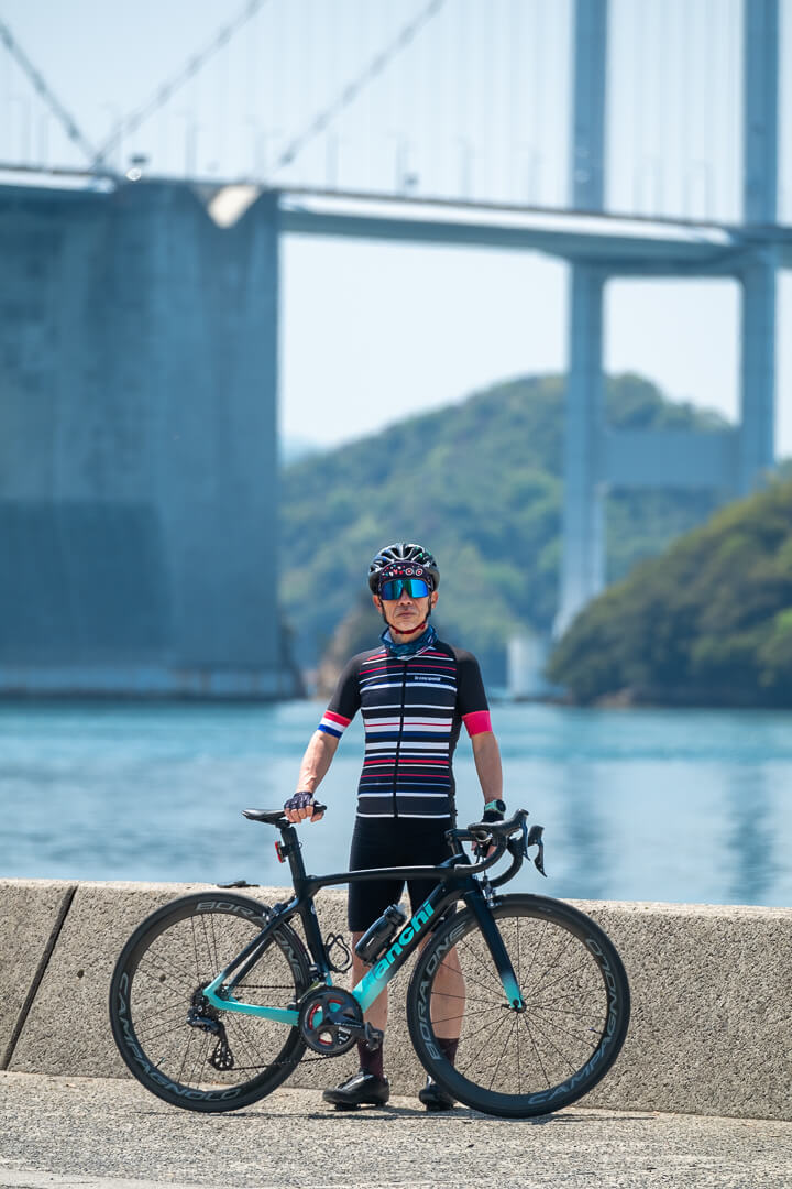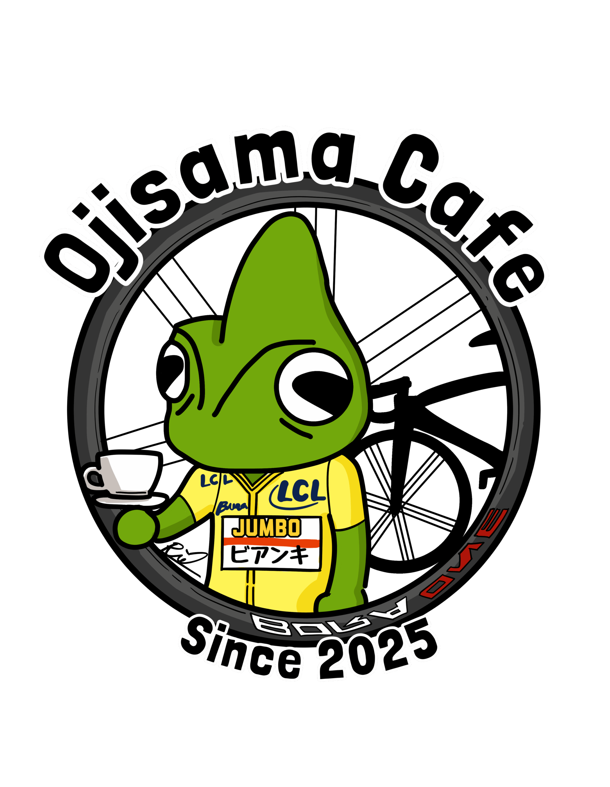 ロゴマークは、サイクリストからの視認性を高めるために、私の愛車であるイタリアの世界最古の⾃転⾞ブランドBANCHI(ビアンキ)とツール・ド・フランスのイメージで作成しました。