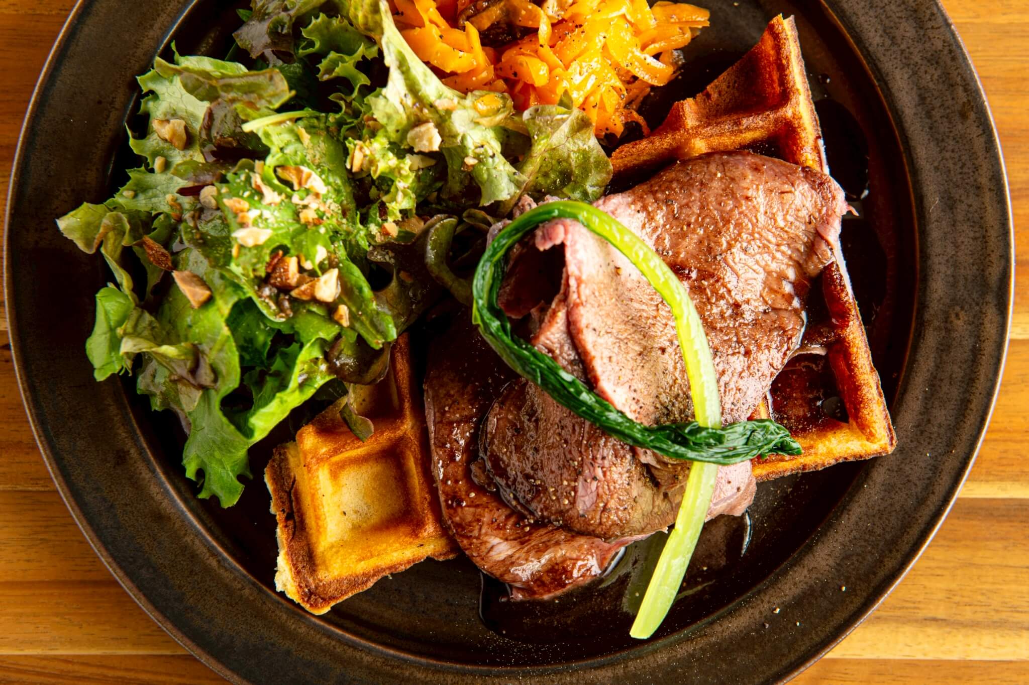 メニュー/オリジナルのさっくりとしたワッフルをお食事メニュー。