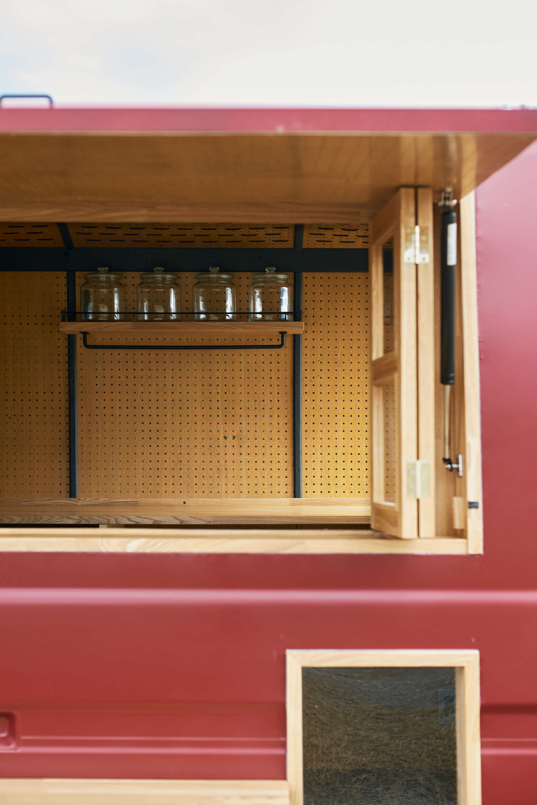 昔から大好きな色のワインレッドを外装に、内装は木をメインに作成して頂きました。