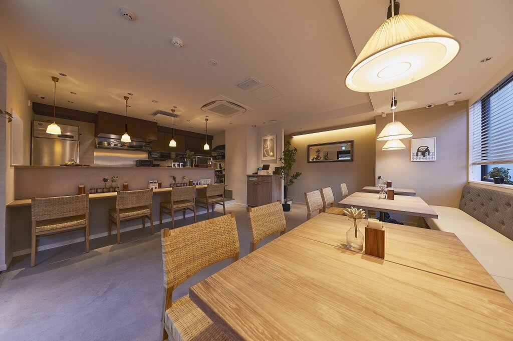 外観、内装ともに南フランスのヴィラをイメージしています。海外旅行が難しくなったコロナ禍以降、気軽に海外の雰囲気を感じてもらえればと思っています。メニューは10種類以上の野菜を使ったランチデリプレート、紅茶で煮込んだグリルカレーなど、心にも体にもヘルシーなメニュー作りを心がけています。またヨーロッパの伝統料理なども提供し、旅行気分を味わってもらえるようにしています。