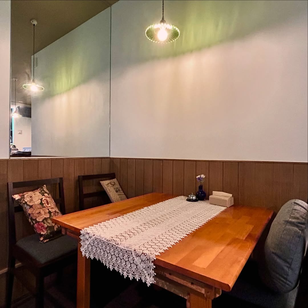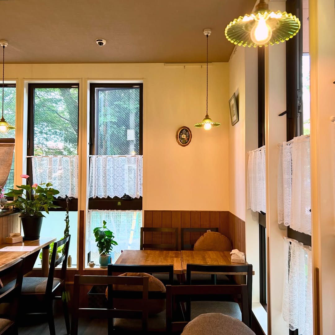 木目調で優しい雰囲気の店内は、ゆったりとした時間が流れる“癒しの空間”。地域の方々がランチやお茶を楽しみに訪れる「憩いの場」でう。家庭的で温かみがあり、落ち着いた時間を過ごせるカフェ。