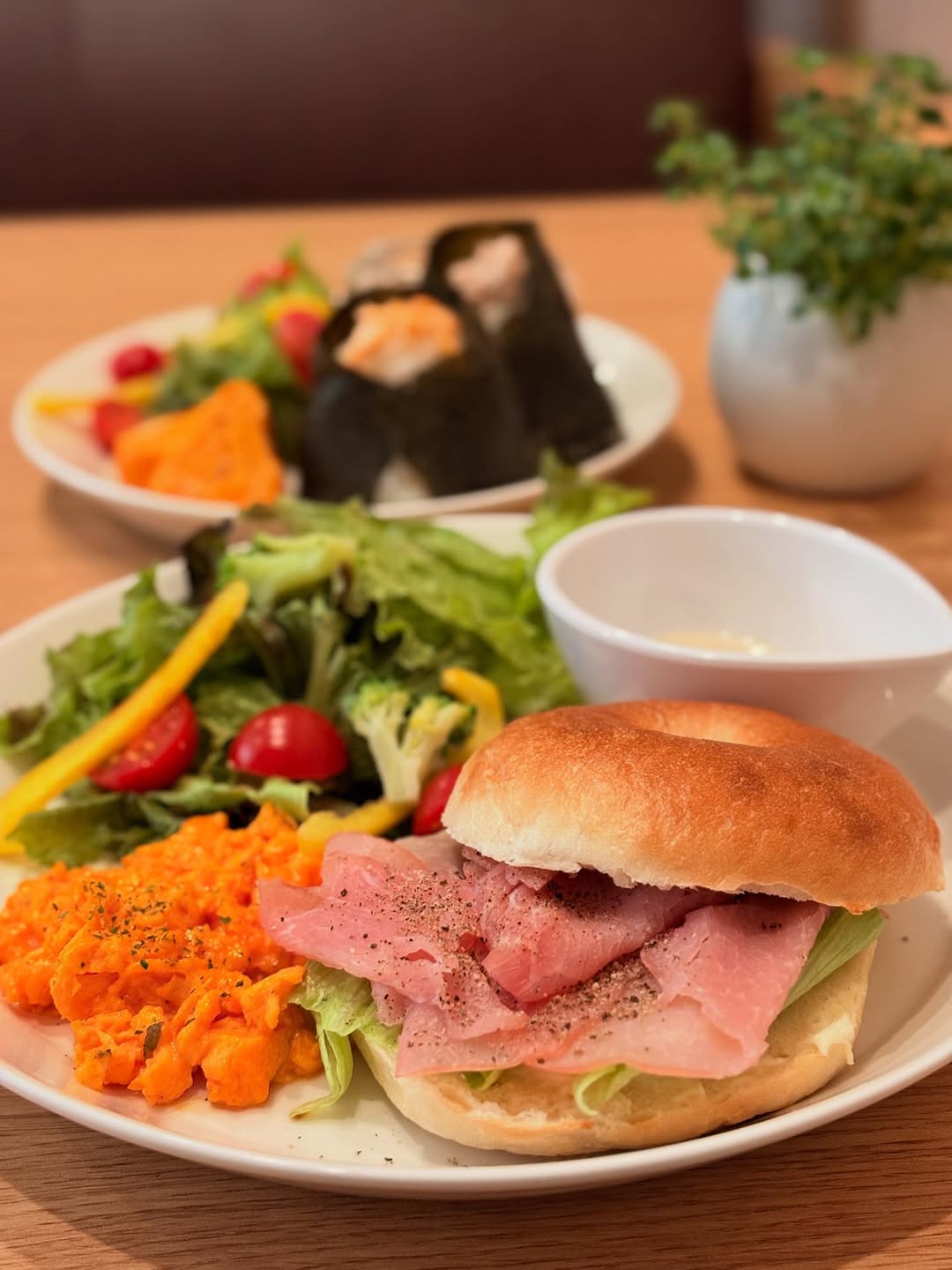 ベーグルサンドやハンバーグランチ、エスプレッソコーヒーを中心に色々なメニューを取り揃えてやってると思います