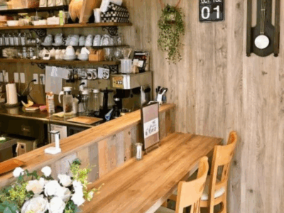 木のぬくもりを感じるアンティークな内装の工房風カフェ