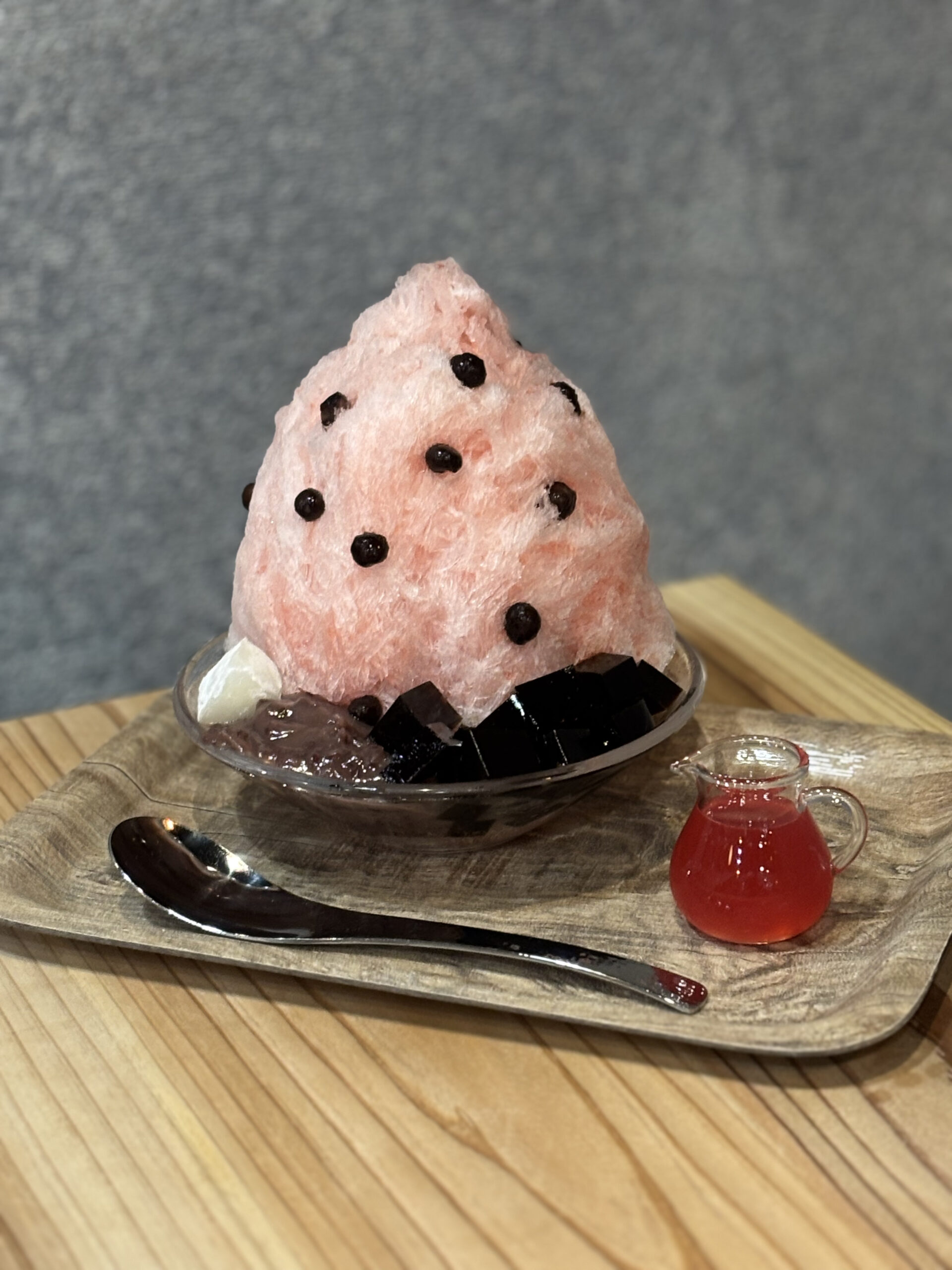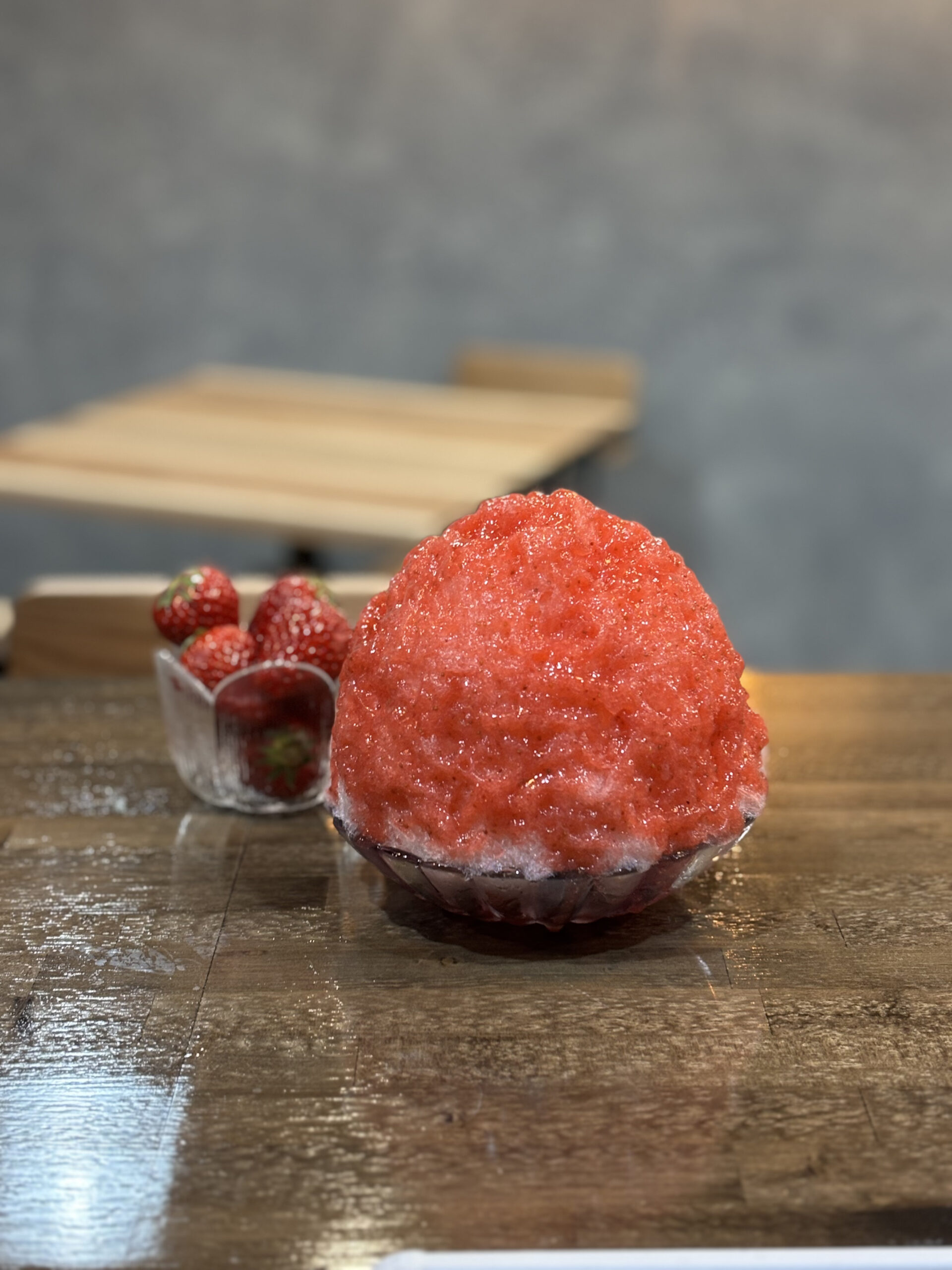 メニューはかき氷をメインとし、あんみつとドリンクメニューを少しご用意しています。夏はさっぱりめのかき氷、冬はもったりとしたかき氷が人気なのでお客様の需要に合わせて商品開発をしています。常に旬の食材を使用したメニューを取り入れているので、かき氷で季節の移り変わりを感じることができるかと思います。