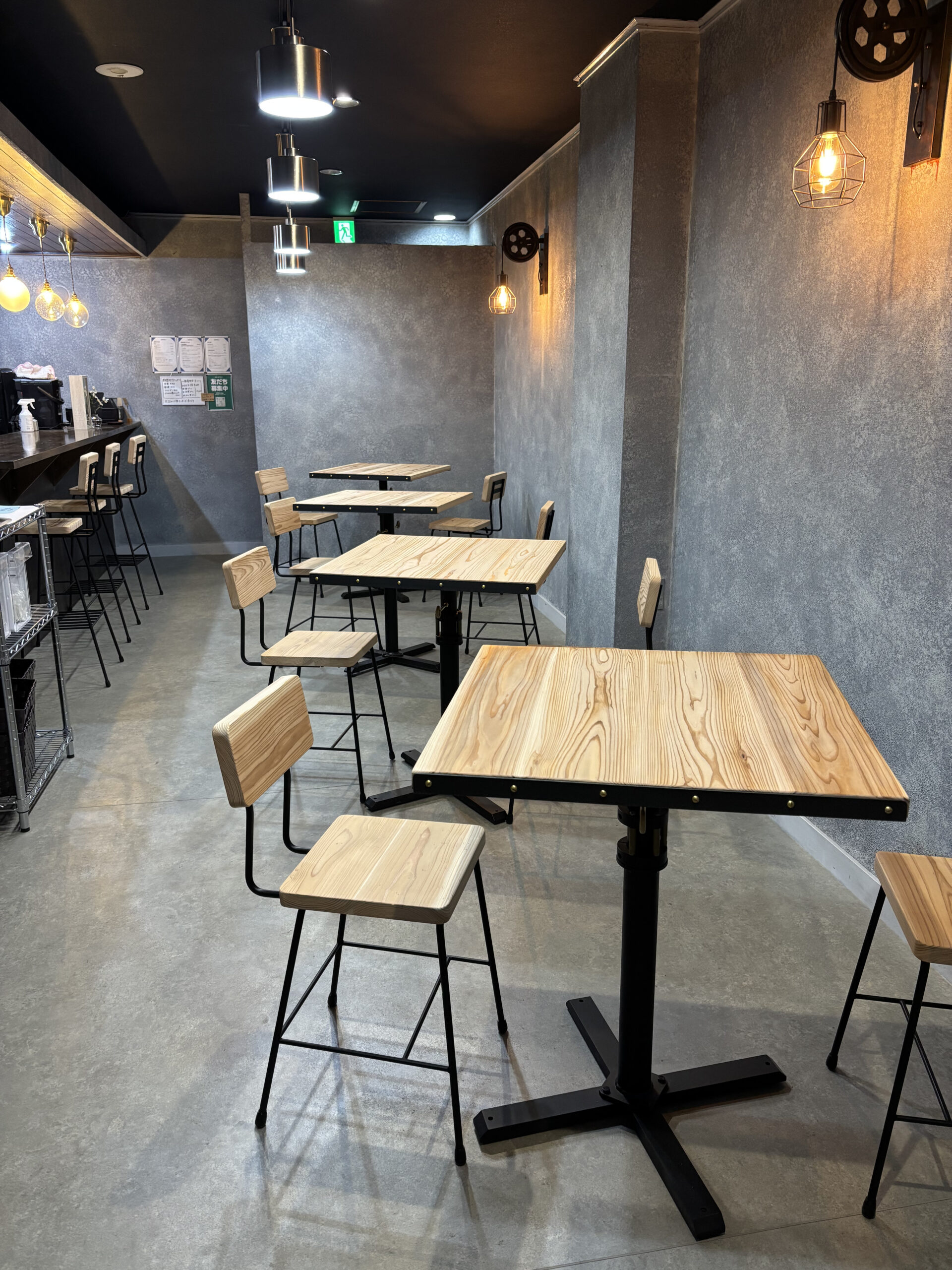 前テナントがスナックだったため、スナックの面影を残しつつ隠れ家的な内装に。オシャレだけどなんだか落ち着く雰囲気に仕上げました。また、お客様との関わりも大切にしたいと思い、カウンター越しに接客できる内装にもこだわりました。